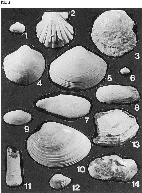 図版2 阿南市辰巳町桑野川河口地下の沖積層から産した二枚貝化石.
