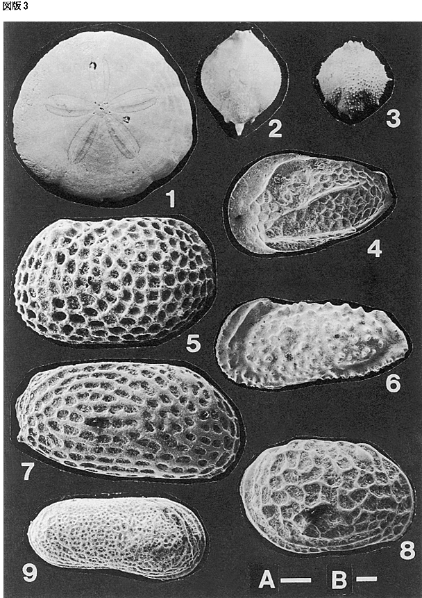 図版3 阿南市辰巳町桑野川河口地下の沖積層から産した棘皮動物・甲殻類化石.