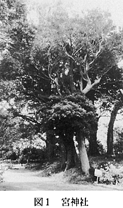 ほか)。宮神社の社叢林(図1)はよく繁茂し、太い樹が多く、神社としての威厳があり、防風林としての役も大きい。 隣接する大京原の平島上保育所との境界にアケボノスギ