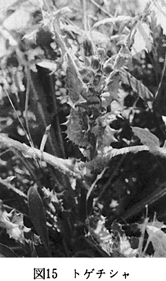 L.(図15) 茎の節間や葉裏の中央主脈上に、触れると感じられる刺がわずかながらある。葉身は羽状に分裂するものと、しないものがある。鳴門市、土成町、海南町などにも見られるが少ない。