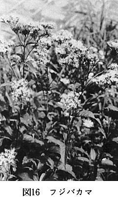 Akasawa(図16) 秋の七草の一つで、本町のは葉が深く3裂するものが少ない。県下の自生はまれ。