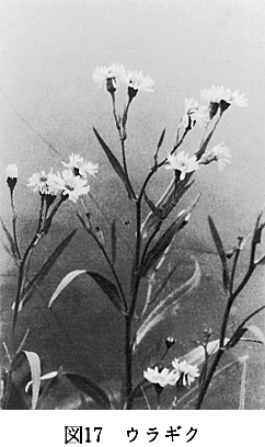 tripolium L.(図17) 塩湿地に見られる2年草で、茎は太くつやがあり、高さ1m
