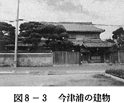 地形図や現状と必ずしもそぐわない。沖洲では今も加子屋敷が残っているといわれ、実際にそれらしき古い建物が散見できる(図8−7、−8)。今津浦も伝統的な様式の建物が多く、かつての加子屋敷を彷彿(ほうぶつ)させる。 今津浦が加子屋敷であったのは間違いないが、当時の詳しい状況や現在とのつながり等は、今後の研究をまちたい。