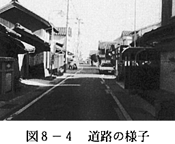 (8)加子屋敷 今津浦 今津村史によれば、那賀川町のはぼ中央にある今津浦は、かつて加子屋敷(各浦々で加子が住んでいた住宅地)が存在し、現在加子住宅そのものは残されていないが、方形の道路形態や敷地割にその痕跡を止めている(図8−3、−4、−5)。 江戸時代阿波藩蜂須賀公の参勤交代は、御座船で徳島・福島を出発し、海路、沼島や紀ノ川口を経て大阪・安治川口に着き、それから陸路を江戸に向かった。海の行列は、千石積み造り総朱塗りの御座船を中心に大小30艘(そう)近い船団で、これらを操る乗り組みの加子も相当数が必要であった。加子は封建的身分制度に組み込まれ、上には「格付船頭」、「御目見(おめみえ)船頭」、「船頭」があり、その下の「御見杖突格(つえつきかく)」や「杖突格」に直接指導監督されていた。船頭や杖突格は苗字帯刀を許された士分で、大多数の加子は家屋敷が与えられた三人扶持であった。加子は、宍喰(ししくい)浦から阿部(あぶ)浦や今津浦、津田浦、沖須浦を経て堂の浦・土佐泊浦に至る53の浦々に住んでいた。2) 今日まで伝えられてきた加子屋敷として、藩政時代「沖須浦」と呼ばれた徳島市沖洲町がある。 阿波藩水軍の加子や船頭に関する人事や藩主・家臣の船の管理修復まで水上運輸の一切の行政を司る「安宅役所」は、寛永年間(1624〜43)に現在の徳島市安宅町に移された(安宅村軍港計画)。これに伴い沖洲の北屋敷・南屋敷(県道沖洲徳島本町線の南と北で、住居表示改正以前の呼称)には、船頭居宅15軒、加子居宅160軒、物言手代居宅2軒、合計177軒が建設された。3)