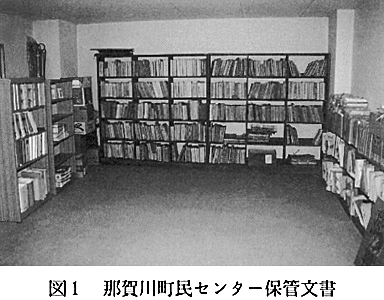 【おわりに】 この調査は、那賀川町内にある歴史史料の所在・概要調査、つまり何があるのかを明らかにしようと考えて行ったもので、地域史研究ということからすれば第一歩であり、基礎作業であった。文書群の中身の検討・研究については、別の機会にゆずらなければならない。 また、調査させていただいた公文書を概観してみたが、那賀川町は、合併以後昭和42年(1967)に現庁舎が建設されるまでの約10年間、旧平島村役場と今津村役場2年ずつ交代で使用する移動庁舎であった。その移動につれて多くの公文書が移動を余儀なくされており、必要最小限の公文書以外は廃棄されたものと思われる。このように考えると、現在残っている公文書は必要最小限の公文書である。今回目録化された全文書群はすべて、このままの形で町の文化財として町民の手によって保存され、次世代に伝えていっていただけたらと考える。 最後に、快く貴重な資料をお見せいただいた、町議会議長松本善明氏、助役福島 聡氏、総務課長藤本正典氏、町議会事務局長西川正博氏をはじめ多くの関係者の方々に感謝の辞を述べたい。