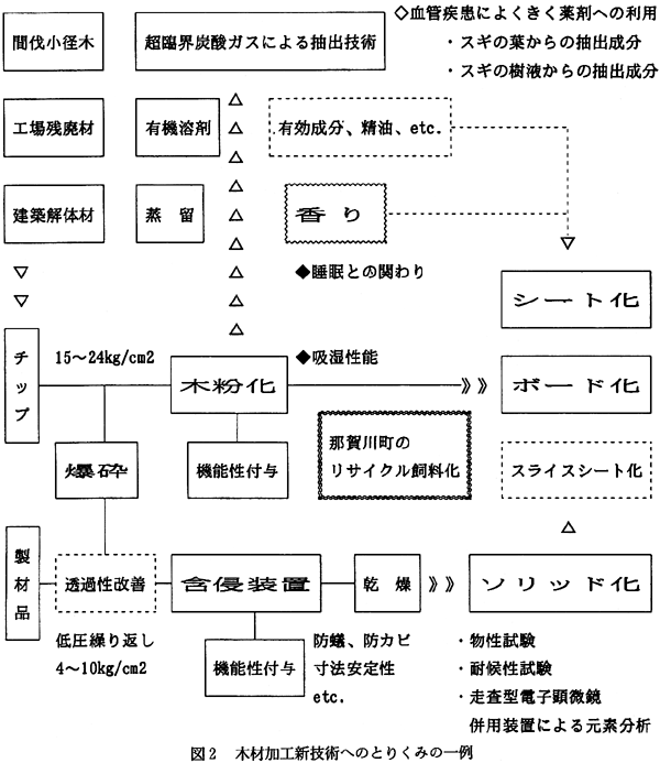 3 木工関連産業の動向と課題 1)那賀川町の木工関連産業の動向 那賀川町の木工関連業の最初は製材業の展開である。明治の初期に那賀川町の回船問屋および薪炭業などの商業資本が那賀奥の林業経営に進出し始めた頃に端を発する。これは担保物件として山林を集積したもので、昭和初期には中島地区の商人が、木頭村を中心に那賀奥の山林の半分を押さえたと伝えられている。伐採された木材は那賀川を筏(いかだ)で流送されて、大正期には近代化を完了した製材所に持ち込まれた。中島地区は製材業が軸となって活況を呈したのである。だが1970年代の外材輸入の本格化と、長安口ダムによる流送の停止で状況は大きく変化した。国産材が相対的に高値となったため各事業所は原料を外材に切り替える対応をとった。ところが外材を扱うには大規模な資本準備が必要とされるため、オイル・ショックを前後する時期に倒産が相次ぐこととなった。その試練を経て、現在は輸入材と国産材を扱う企業が混在している。ただしそのいずれの企業経営も大きな問題を擁している。国産材に依拠する場合は、原料コストの高さに加えて優良材の絶対的不足の問題に直面している。また外材依存の場合は価格が安定しているが、総じて「原料高の製品安」の状況にあり、経営困難で後継者問題の発生を見ている。 次に、那賀川町の家具・装備品は建具業に代表される。その歴史は明治の初期に逆上り、昭和25年頃に最盛期を迎えた。しかしながら那賀川町の建具は当初より関西市場向けの見込み生産だったために、その後の住宅事情の変容と先端技術導入による生産システムの対応に遅れをとり、今日の混迷を余儀なくされている。置家具では輸入物との競争で水を空けられており、かつての隆盛を再現することは困難視されている。各事業所の経営戦略は、ア)在来工法の一戸建てに収納する家具生産、イ)大手メーカーの下請け受注(ドアなど)に分かれている。伝統的産業である建具業を、インテリア部門への展開や斬(ざん)新なデザインへの切り替えなど、時代の要請に対応するものに転換することが求められている。 2)木工関連産業の今後の展開 那賀川町の総合計画によると、代表的地場産業である農業、漁業、木工業それぞれに異業種間交流の促進、リゾートへの積極的対応などを課題として確認している。とくに木工業の年出荷額は、製材業関係が20億円、建具業関係が40億円ともっとも高いウエイトを占めている。従って、21世紀へとつなげていける基幹産業を育成していくためには、この木工業関連を中核として、農業生産システム、漁業生産システムと有機的に連動し、なおかつ那賀川町の町づくりとも連鎖反応していくようなゼロ・エミッション生産システム方式を構築することが肝要である。 エミッションとは排出物、廃棄物のことで、ゼロ・エミッションとは企業活動の結果、吐き出される産業廃棄物のすべてをゼロにすることである。1994年7月に、国連大学で第1回「ゼロ・エミッション研究会」が開催され、初めて概念と構想が明らかにされた。概念としては、廃棄物の量を削減するのではなく、皆無にする生産システムの新たな構築をめざすという意味であり、構想としては、全産業の製造工程をつくり直し、既存の産業を再編成して全く新しい「産業集団」を生み出すというのだ。企業・産業の活動が廃棄物ゼロの循環において維持されるならば、地球環境・資源問題の解決は、より手近なものとなるであろう。 20世紀における日本の企業活動は、品質と効率を追求し続ける工業化への道を歩んできたが、その歩みの中で第1次産業は遅れをとり、停滞していった。那賀川町の木工業・建具業も例外ではない。しかしながら21世紀における企業・産業活動は、地球環境・資源問題への対応を余儀なくされている。工業化への歩みの中で遅れをとってしまった第1次産業を、今度は注目を集める産業として再生させるためにはゼロ・エミッション生産システム方式への対応が急がれる。 ゼロ・エミッション生産システム方式のモデルの一つとして、「ビール・醤(しょう)油醸造−水産養殖漁業」のような形態が考えられる。ビール・醤油醸造には大量の廃棄物が伴う。その大半は高蛋白物質といわれている。ところがこの豊富な蛋白質が産業廃棄物として埋め立て用か、家畜の飼料にしか使われていない。そこで魚介類の養殖と連結させることを考える。固形廃棄物だけでなく、醸造設備やビンを洗浄した後の汚水をも含むすべての廃棄物が養殖漁業にとって貴重な飼料となりうる。この産業連関システムを可能にするためには、ビール醸造施設の洗浄のために設定されている厳しい衛生基準をクリアするために使用されている苛性ソーダをはじめ強力な薬剤を砂糖系のような無害の洗浄剤に切り替える有害物質の除去技術の革新が必要になってくる。さらには養殖業がまた廃棄物を生み出す汚染源になるのではないかとも考えられ