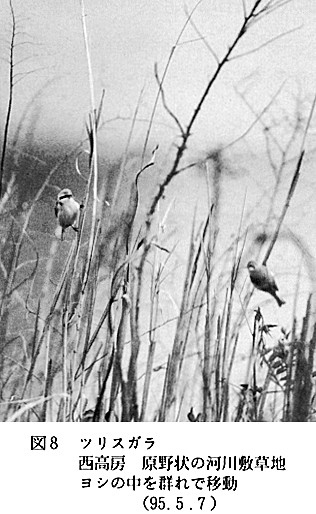 四国および徳島県で2例目の記録であるオオセッカ(17)も、ここのヨシ群落で4月16日〜18日に記録された。早朝にヨシ群落の中下層を移動しながら、定期的に大きな声でジュルジュルとさえずっていたが、時間が経過するとともに鳴かない時間が長くなっていった。本種は、国内では東北や関東の限られたヨシ原でのみ繁殖確認されている鳥であり、RDBで危急種に指定されている。当地ではその後観察されなかったことから、越冬個体あるいは渡りの途中であったものと思われる。 八丁野の竹林は、かつてサギの集団繁殖地やムクドリ大群のねぐらとして利用された(6)が、今回調査では、いずれも認めなかった。