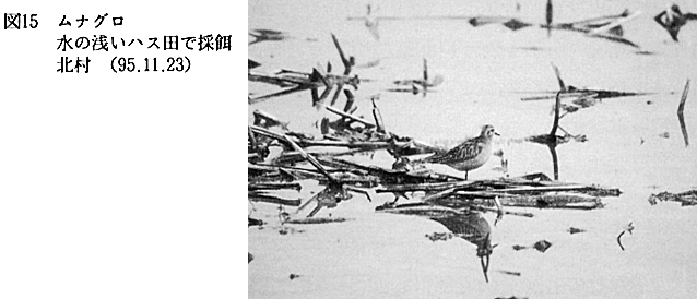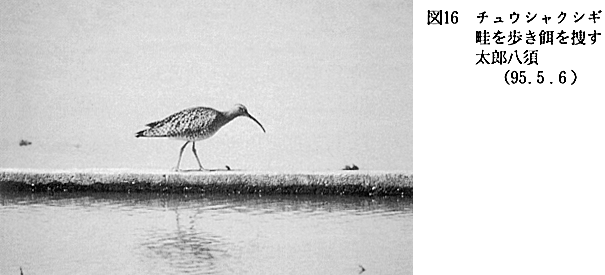 のハス田があり(14)、前述の太郎八須のほか、北村や中村にかけてまとまった湿地環境となっている。これらハス田は、北の繁殖地と南の越冬地を行き来するシギ・チドリ類の採餌および休息のための重要な中継地となっており、目録に示す15種のシギ・チドリ類(図13)のうち13種が記録された(図14,15,16)。