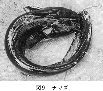 〔ギギ〕 中部地方以西の本州、四国の吉野川や仁淀川水系の中流域などに生息する。夜間に活動し、摂食する。釣りでも釣れることがあり、トゲがあって、手を刺すことから、きらわれている。 〔ナマズ〕(図9) 日本全土に分布。