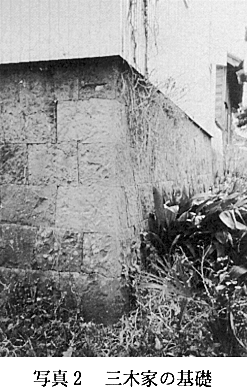 の差があるのは、回転するためと、平均に整地するための工夫であろう。軟弱な土盛りの上では人力ではとても動くものでなく、牛馬に引かせて土盛りをしながら、現在の三木家の屋敷(写真2)がつくられたものであろう。