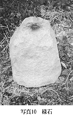 8)様石と寝床 図8、写真10は砂岩製の石造物で、三木の家人も使用目的は分からないというが、邸内の庭の片隅に「からうす」や他の石造物と共に置かれている。高さ45cm、幅34cm