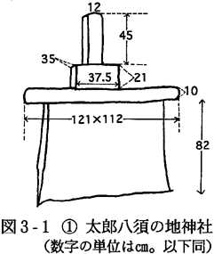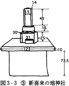 2)地神社の形態 (1)形態と素材 北島町の地神社11の形態とその素材をまとめたものが、表2である。