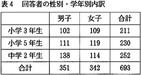 各問ごとに各学年別の回答の集計を表と図に示し、分析は、最終設問の後にまとめて記述した。なお、表中の数は回答数であるため、その総数は必ずしも総回答者数とは一致しない。