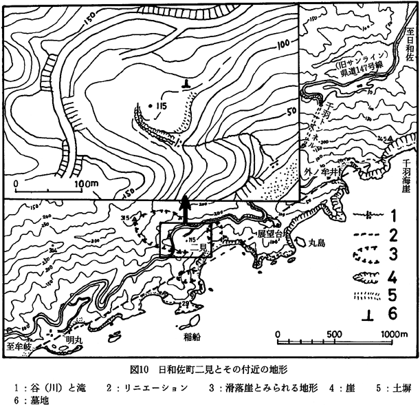 あたりに傾斜変換点がある程度である。 なお、二見平坦面から南に延びる短小な尾根の東向き斜面にも、標高100〜80m