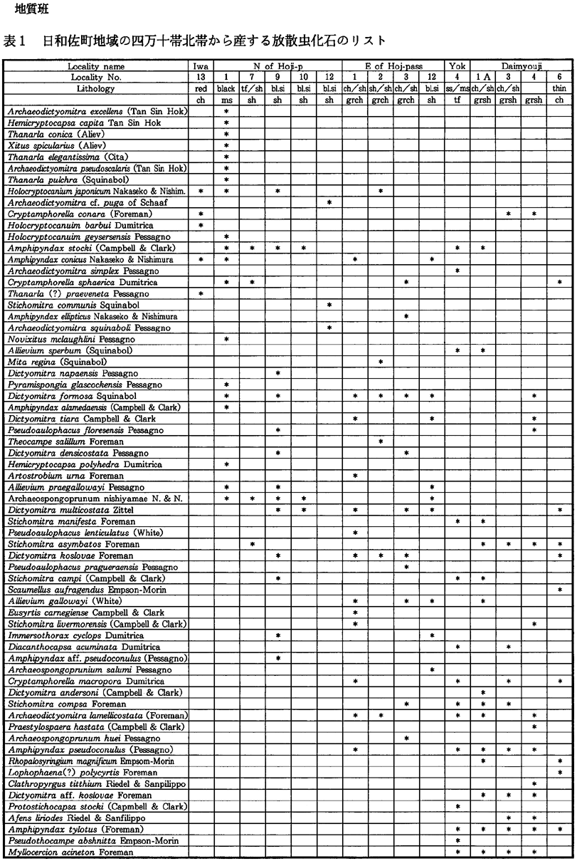 と共に産し、その年代はカンパニアンとくに前期から中期(S. compsa 群集帯)である。 サンプル12の黒色珪質泥岩からは
