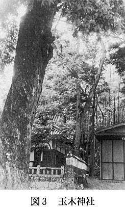 は、幹もよく伸び、樹冠もよく拡がってみごとな樹形である。裏山の植物相は次のようである。 コバンモチ、ヤマモモ、イスノキ、スダジイ、オガタマノキ、ナギ、サカキ、ヤマビリ、ヒサカキ、カンザブロウノキ(多い)、タイミンタチバナ、ツブラジイ(多い)、センリョウ、イズセンリョウ、イヌビワ、ネズミモチ、タブノキ、テイカカズラ、ミミズバイ、シキミ、ヤマウルシ、クスノキ、ハゼノキ、サルトリイバラ、ヤブムラサキ、イロハモミジ、アラカシ、アカメガシワ、ヤブニッケイ、ヤマモガシ、カナメモチ、マンリョウ、サネカズラ、ツタ、ヒメユズリハ、ミツバアケビ、カクレミノ、イタビカズラ、ミサオノキ。 その林下には、ベニシダ、コクラン、シュンラン、ウスギムヨウラン、ムヨウラン、オオキジノオ、スイカズラ、ギンリョウソウ、ノブドウ、クサイチゴ、コシダ、トボシガラ、ヤイトバナ、ウバユリ、コモチマンネングサ、ササクサ、ナギラン、イチヤクソウ、ヤブコウジ、ハルザキヤツシロラン。 ミサオノキ、コバンモチ、ヤマモガシ、ミミズバイ、ヤブコウジなど亜熱帯性樹林に多く見られる樹種や、腐生植物のムヨウラン、ウスギムヨウラン、ギンリョウソウ、ハルザキヤツシロランなどが見られることは、樹林が安定していることを示している。 境内ではクスノキ、シイの巨樹と共に、ヒロハチシャノキの植栽は珍しい。 4)玉木神社のムクロジ 西河内字丹前の玉木神社に、町指定天然記念物になっている幹周4.85m・5.30m