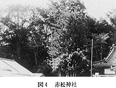 境内の植栽されたと思う樹種は、次のとおりである。ヤブツバキ(1.00m)、イヌシデ(1.35m)、ウラジロガシ(2.09m)、アラカシ(2.09m)、ヒメシャラ(0.77m)、ツブラジイ(2.42m・2.77m・2.20m)、オガタマノキ(1.02m)。社殿の裏山の樹林は次のとおりである。 高木層 ツブラジイ(3.73m)、アラカシ(1.81m・1.70m・1.32m)、クスノキ(2.75m)、スダジイ(2.20m・2.18m)、アカガシ(0.98m)、ヒノキ(2.18m)、ツガ(1.64m)、ツクバネガシ(1.08m)、スギ(2.20m)、ヒメシャラ(1.23m)、モミ(2.23m・1.90m)、カゴノキ(0.84m)。 亜高木層 オガタマノキ、モミ、シキミ、テイカカズラ、サカキ、ウラジロガシ(1.57m)、アセビ(0.67m)、カナメモチ、ネジキ(2.20m)、オンツツジ(0.34m)。 低木層 アセビ、ヒサカキ、アカメガシワ、タブノキ、サカキ、カクレミノ、シキミ、クチナシ、タブノキ、リンボク、ネズミモチ、ヤブニッケイ、ヤマビワ、モッコク、ヒイラギ、ヤブツバキ、オンツツジ、モミ、モンツキシバ、シャシャンボ。 草本層 センリョウ、アリドオシ、ハラン、タカサゴキジノオ、キツネササゲ、コウヤボウキ、チヂミザサ、コクラン、シュンラン、フユイチゴ、マンリョウ、イヌマキ、ヤブコウジ、モミ、エゴノキ、サルトリイバラ、ヒノキ、シキミ、ウマノスズクサ、トウゲシバ、ハルザキヤツシロラン。 赤松神社の特徴は、樹種も多く、各層の植被率も高いが樹高はそれ程でもない。腐養土の堆(たい)積がよく、腐生ランのハルザキヤツシロランが安定して見られる。 6)円通寺の植物相 赤松にある円通寺は、境内や裏山の樹齢を推測すれば、寺の歴史の古さがうかがえる。 境内の樹種 イチョウ(3.86m)、クロガネモチ(1.52m。フウラン着生)、ムクノキ(2.98m)、サザンカ(0.38m)、モチノキ(2.16m)、エノキ(2.19m)。 裏山の樹林 高木層 ツブラジイ(3.75m・1.77m)、ヒノキ、スギ、モウソウチク、ツクバネガシ(0.96m)、モチノキ(1.96m)。 亜高木層 イスノキ、リョウブ、ネジキ(0.85m)。 低木層 ヒサカキ、ヒイラギ、ネズミモチ、ヤブニッケイ、カゴノキ、モチノキ、イヌビワ、スギ、ツクノバネガシ、カナメモチ。 草本層 サルトリイバラ、センリョウ、アリドオシ、ベニシダ、アセビ、シュンラン、テイカカズラ、イタチシダ、ヤブツバキ、コガクウツギ、ゼンマイ、ハマクサギ、キチジョウソウ、ナンテン、ササクサ、ヤブコウジ、ムベ、チャ、シヤシヤンボ、ナキリスゲ。 7)久望・赤滝の周辺 滝はよほどの干ばつでない限り、水は絶えることがない。岩の色が赤褐色をしていることから赤滝の名がついた。岩場に見られる植物 イシカグマ、イブキシグ、イワガネソウ、ヘラシダ、ウワバミソウ、リョウメンシダ、オオハナワラビ、ミズヒキ、クルマシダ、ワサビ、イワタバコ。滝の周辺には、ヤブツバキ、ヒサカキ、ネズミモチ、センリョウ、クリハラン、ノコギリシダ、ムベ、ミゾシダ、キランソウ、イロハモミジ、イスノキ(1.59m。山神を祀(まつ)ってある)、シシラン、シロダモ、ホソバカナワラビ、トキワシダ、ツヅラフジ、マルバウツギ、ヒトツバ、フユイチゴ、イロハモミジ(0.84m)、スギ(1.28m)、ノリウツギ、アリドオシ、ジャノヒゲ、クルマシダ、チヂミザサ、ナツフジ、フユヅタ、タツナミソウ、ビナンカズラ、ホシダ、マムシグサ、ノササゲ、ヌマダイコン、コアカソ、セキショウ、マツカゼソウ、イズセンリョウ、キンバイザサ(図5)。