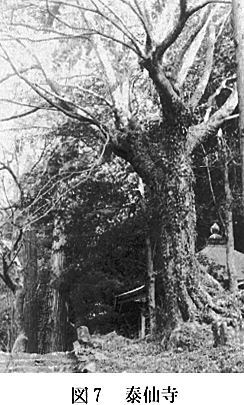 ほか4本の植栽がある)。 12)泰仙寺(山河内字西山) 山河内字西山から玉厨子山に登る途中、薬王寺の奥院といわれる泰仙寺がある(図7)。境内に、スダジイ(2.42m)、ヒメユズリハ(0.81m・1.41m)、トチノキ(1.48m)、モッコク(0.99m)、イロハモミジ(2.01m・0.96m)、スギ(3.50m・3.70m)。林下には、モロコシソウ、ダイコンソウ、オオルリソウ、シュウブンソウ、ミズヒキ、セキショウ、イブキシダ、イシカグマ、ハマクサギ、キンミズヒキ、ボタンヅル、コアカソ、ナツヅタ、ウドカズラ、マツカゼソウ、モミジカラスウリ、コチヂミザサ、ホウキラン。