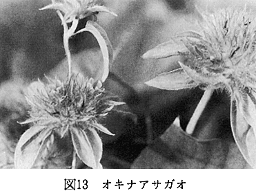 7.帰化植物 日本は島国だから、国境がはっきりしているので、帰化植物かどうかの区別がつき易い。侵人経路は、動物の飼料や大豆などの原料の中に混入したり、木材や出入国者の体について運ばれる。また輸入した園芸種から離れたものが、日本の風土に合って定着したものを帰化植物と呼んでいる。中には在来種を追いやって、低山から高山まで、強い繁殖力を持ち、時には人体に悪影響を与えるものも少なくない。 日和佐町は、直接外国との交流拠点でないし、養豚・養鶏場も少ないが、高温・多湿で空地もあるので、帰化植物にとって好ましい環境であるのかその種類は少なくない。列挙してみると次のようである。 (きく科) セイヨウタンポポ、ブタナ、ノゲシ、オニノゲシ、カミツレ、ホウキギク、ヒロハホウキギク、アレチノギク、オオアレチノギク、ヒメムカシヨモギ、ヒメジョオン、ペラペラヨメナ、コセンダングサ、セイタカアワダチソウ、ヒメヒマワリ、ハキダメギク、ベニバナボロギク、ダンドボロギク、チチコグサモドキ、ブタクサ、オオオナモミ。 (ききょう科)キキョウソウ。 (ごまのはぐさ科)アメリカアゼナ、マツバウンラン、オオイヌノフグリ、タチイヌノフグリ。 (なす科)チョウセンアサガオ、タマサンゴ、テリミノイヌホオズキ、センナリホオズキ、ツクバネアサガオ。(くまつづら科)ヤナギハナガサ、アレチハナガサ。 (ひるがお科)アメリカアサガオ、アサガオ、マルバアサガオ、マイアサガオ、ホシアサガオ、マルバルコウ、オキナアサガオ(図13)、アメリカネナシカズラ。 (せり科)ノラニンジン。(あかばな科)メマツヨイグサ、コマツヨイグサ、ヒルザキツキミソウ、ユウゲショウ、ヒレタゴボウ。 (みそはぎ科)ホソバヒメミソハギ、ヒメミソハギ。(おとぎりそう科)キンバイ。 (あおい科)ギンセンカ、イチビ、アメリカキンゴジカ、キンゴジカ。 (とうだいぐさ科)ホルトソウ、オオニシキソウ、ハツユキソウ、コニシキソウ、ナンキンハゼ。(かたばみ科)ムラサキカタバミ、ハナカタバミ、オッタチカタバミ。(ふうろそう科)アメリカフウロ。(まめ科)アレチヌスビトハギ、シロツメクサ、ムラサキツメクサ、コメツブツメクサ、ウマゴヤシ、アメリカツノクサネム、イタチハギ、エビスグサ。(あぶらな科)ショカツサイ、マメグンバイナズナ。(きんぽうげ科)シュウメイギク。(なでしこ科)マンテマ、ムシトリナデシコ、ノハラナデシコ、オランダミミナグサ。(すべりひゆ科)ヒメマツバボタン。(やまごぼう科)ヤマゴボウ、アメリカヤマゴボウ。(おしろいばな科)オシロイバナ。(ひゆ科)ノゲイトウ、センニチコウ、ホナガイヌビユ、イヌビユ、ツルノゲイトウ。(あかざ科)ケアリタソウ、ホウキギ。(たで科)シャクチリソバ、オオケタデ、ヒメツルソバ、ヒメスイバ、アレチギシギシ。(あやめ科)キショウブ、ニワゼキショウ、ヒメヒオオギズイセン。(ひがんばな科)サフランモドキ、ハタケニラ。 (いね科)セイバンモロコシ、ヒメコバンソウ、シマスズメノヒエ、シナダレスズメガヤ、オオクサキビ、カモガヤ、ジュズダマ、メリケンカルカヤ、イヌムギ。(ばら科)カジイチゴ。(むくろじ科)フウセンカズラ。(あかね科)オオフタバムグラ。