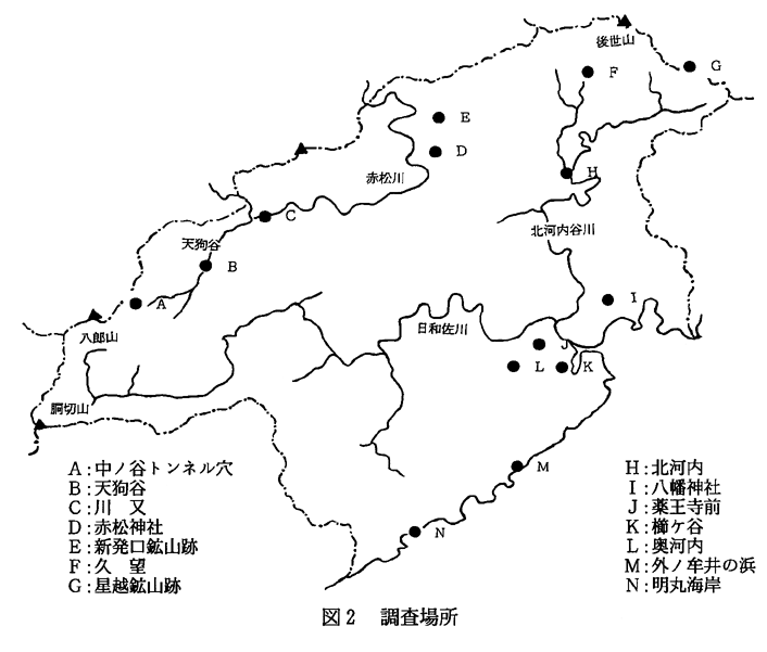 の略)を示す。確認地の後の(真鍋)は真鍋弘司が確認、その他は坂東が確認したものである。また、種名未同定のものについては十分に検討のうえ、別の機会に報告したい。