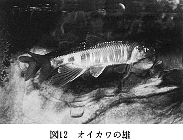 もあるのがいるが、個体数は少ない。オイカワの雄が多く、美しい婚姻色をしていて体が大きい。オイカワの雄は、雌にくらべて体が大きいので、水流の早い川の中央部でも生息できるが、雌の方は川岸近くの水流がゆるやかな場所に生息している。ニゴイも大きく、体長25〜35cm