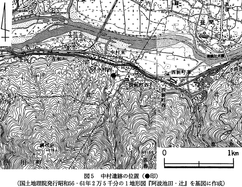 前後の低位段丘上に位置し、当該地名から「中村遺跡」と呼称されている(図5)。以下、おもな採集遺物について概要を述べる。