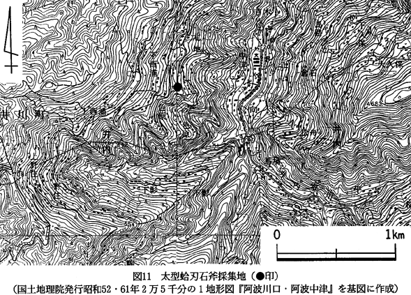 ほど逆上った西岸の、標高約460m の山稜(さんりょう)上であり(図11)、西方約1.5km