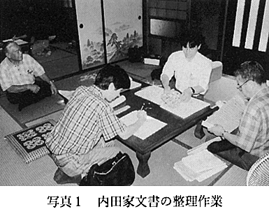 1.調査の概要 −調査個所および方法− 井川町の歴史資料調査の実施にあたり、『阿波藩民政資料』(1914、1916)、徳島県立図書館『徳島県史料所在目録 第二集・三好郡』(1970)、『井川町誌』(1982)など、過去に調査された文献や史料目録を検討した。 その結果、調査対象として選んだのは、質・量とも重要な史料と考えられる辻町の古郷家であった。しかし、地元の方々のご協力をいただき調査にかかったが、諸般の事情により直接の調査をすることはできなかった。ただ、その膨大な史料群の一部が以前に写真撮影されており、その複製本がふるさと交流センターに保存されていた。 古郷家文書については、江戸初期から明治期までの地域の藩政・民政・社会経済に関する基礎的な重要史料が約500点『徳島県史料所在目録』に記録されているが、原史料の保存についても早急な対策が望まれる。なお同センターには、検地帳・棟付帳が保管されていた。 この事情のため、今回の主たる調査対象としたのは、(1)内田治市家文書(西井川)と(2)地福寺文書(井内)である。 調査の作業内容は、調査班全員による、1