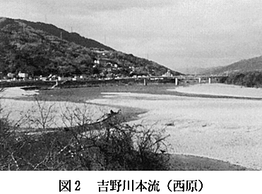 (1)調査場所の概要 調査地点1(図3)は、吉野川本流と穴吹川の合流地点である。川底は砂と小礫からなる。鉄道橋下では、水流により深く浸食されている。水流は速く、オイカワが群れになって泳いではいるが、個体数は少ない。左岸の方が少し浸食されており、水深が1m