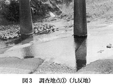 調査地点3(図5)は、水質は良質で流れがある。底質は、砂や礫である。右岸には岩があり、水深が1m