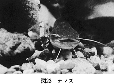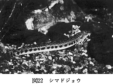 3)見られなくなった魚 昔はいたが、今はいなくなってしまった淡水魚は、聞き取り調査によると、ヤツメウナギ、アユカケ、カジカ、マハゼ、スズキの5種である。ヤツメウナギは、昭和7、8年(1932、3)ごろまではいた。調査地点2