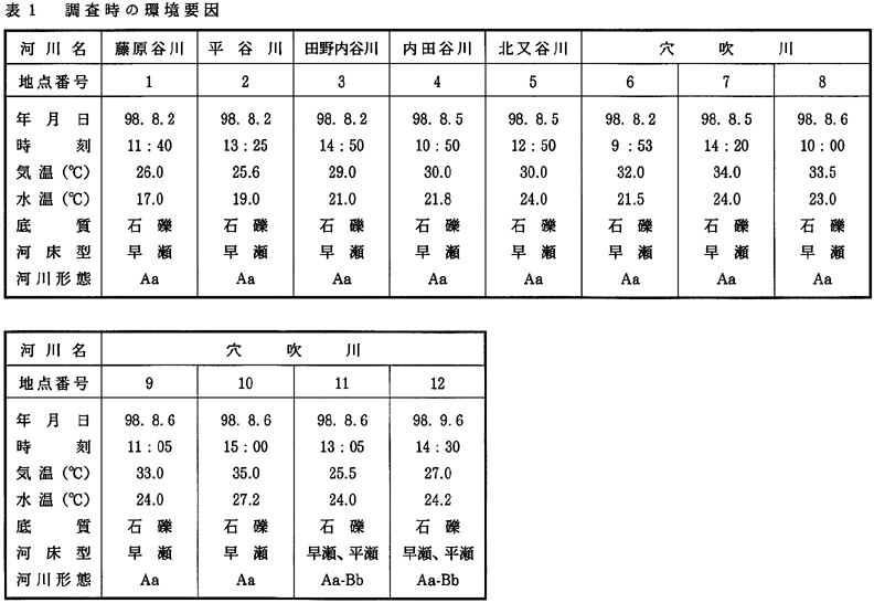 型の河川形態区分を行った。 なお、水生昆虫類の同定は、石田ほか(1988)、川合(1985)に従った。