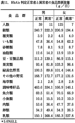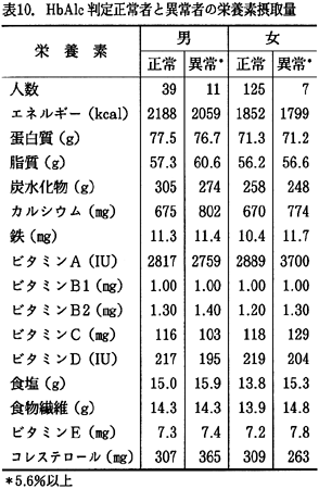 表10および11に、HbA1c