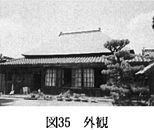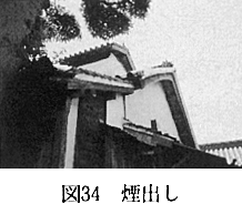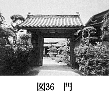 2)「川」の民家 (8)原田 俊彦 家 三島字舞中島1771番地 先祖は川北の武家であったが、戦いに敗れて当地に来たという。 養蚕業も一時営んでおり、その時に「ミセ」に蚕棚をしつらえ、風通しをよくするために、部屋の中央に屋根裏に抜ける開閉式の通気口を設けている(図33)。最盛時には藍を農家から買い取り、まとめて京都に卸していたという。 建築年は明治初年ごろで、最初から左奥側(北側)に切妻の屋根を掛け、ワラ葺き寄棟屋根と組み合わせていて、この切妻屋根には大型の煙出しを設けている(図34)。建物全体に改造は少なく、建築当時の姿をよく残しているが、オクドは撤去されている。 現在、ワラ葺き屋根はトタンで覆われているが、これは昭和初期に行ったもので、付近では最も早かったという。 元々、栽培していた小麦のワラしか使えなかったので頻繁に葺き替えていたが、手間が掛かり過ぎるのでいち早くトタンで覆ったのであろうという事であった。 外観は農家的であるが、間取りは「ミセ」があるなど商家的な内容を持っている(図35、38)。 大きな敷地には立派な門も残っているが、建築年は不明である。家人によると主屋よりずっと古いという(図36)。洪水に備えて敷地全体を110cm