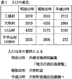 4.むすび 最後に学校設立の基盤となる各地域の人口増減の状況をみると、表1のようになっている。複雑な学校の設置・合併・統合・廃校・休校が行われた(図1)のも、この人口の増減の推移を考えると十分にうなずけるし、村当局、住民の人々の努力、苦労が察せられる。