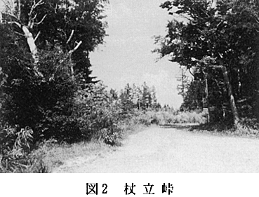 1)杖立峠(図2)1080m 杖立(つえたて)峠は、剣山参拝道としてよく使われた峠である。口山の閑定の滝前にある、昭和3年(1928)建立の「剣山道 是よりお山へ十里 龍光寺八里」と刻まれた高さ3m、幅1.1m、厚さ40cm