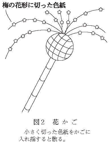 5.野辺送り 葬列 1)花かご(口山では作らない)(図2)。2)タツノクチ(竜の口)道案内の灯ろう1番・2番の2本。3)四本旗(のぼり)4本作り、坊さんに経文を書いてもらう。4)盛りもの 口山と三島では違う。5)シカ(四花)盛りものと一対になる(図3)。6)導師。7)位牌。8)棺 天蓋(てんがい) 棺の上に天蓋をかぶせるようにする。9)ゼンノツナ(善の綱)サラシ1反を棺にかけ、女・子供が引く。